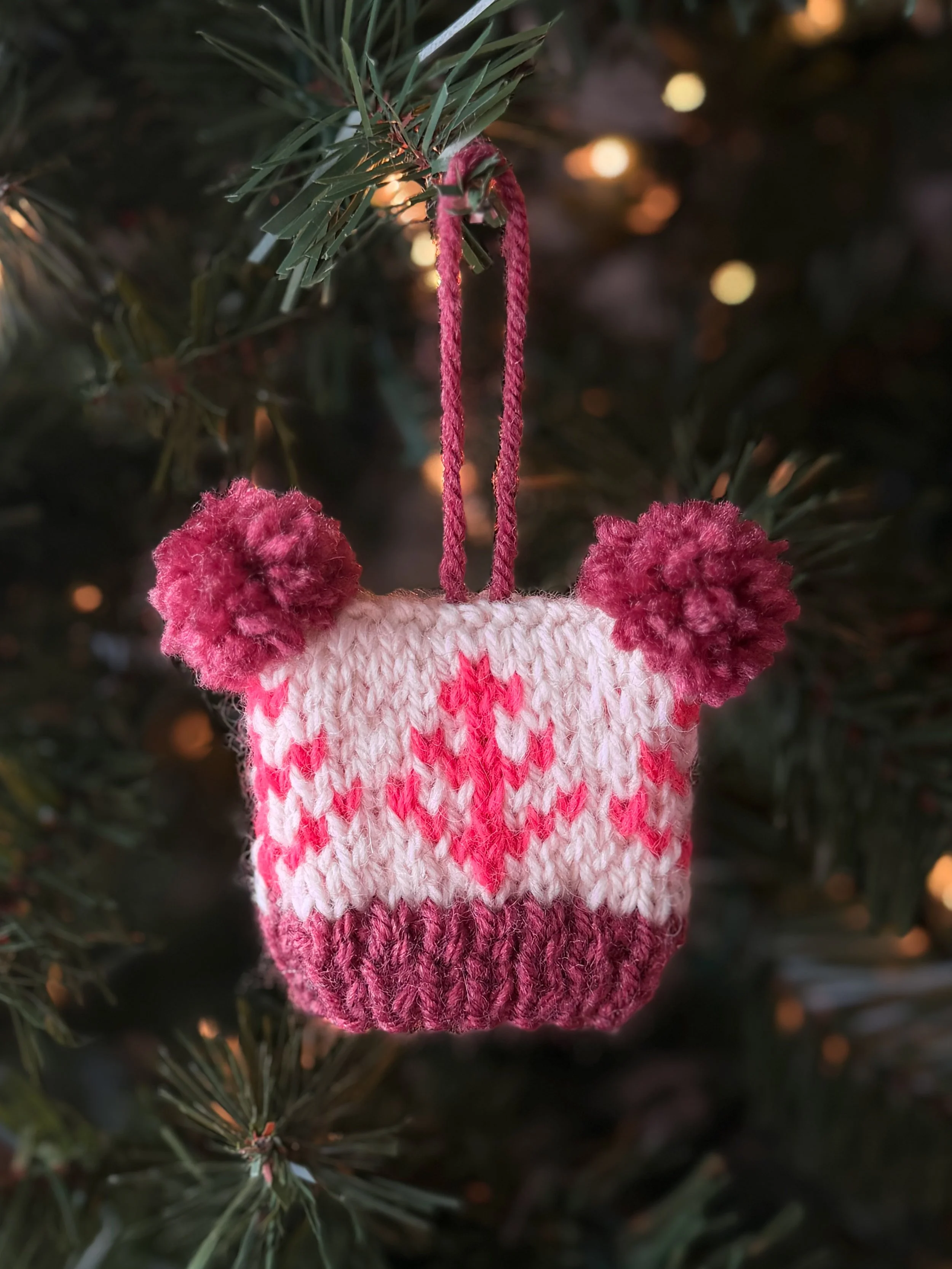 The heart of my work comes from my Great Grandma Gladys, who knit heirloom Norwegian sweaters cherished through the generations. Following in her footsteps, I started with a two-pom baby hat, fell in love with the fair isle patterns and colors, and soon found myself with stacks of tiny swatches that became the inspiration for these mini knit ornaments. I’ve made hundreds — and we’re still going!